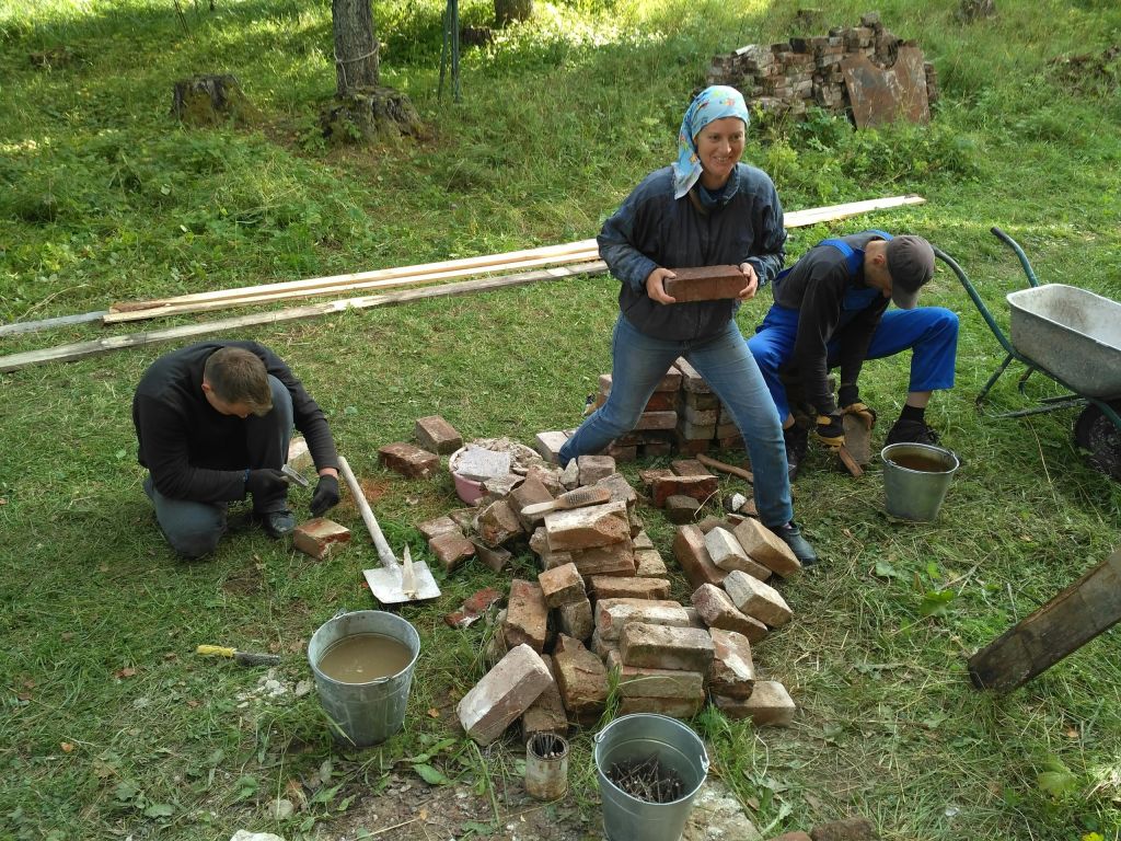 План работ на текущий сезон: ремонт полов внутри храма, кладка кирпича и подготовка материала для неё, установка/разборка строительных лесов снаружи, уборка прихрамовой территории, заготовка дров.