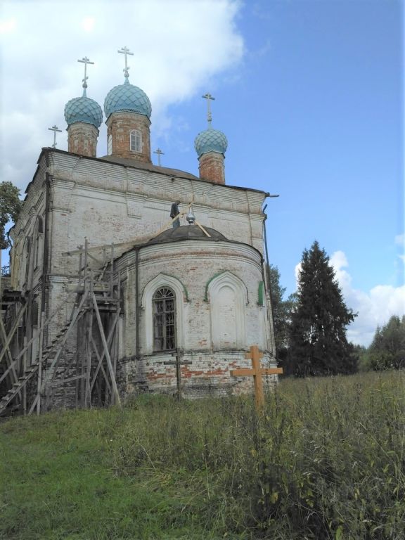 Храм, расположенный в живописной костромской глубинке, закрывался, но сохранил внутреннее убранство. Сейчас силами местных жителей и добровольцев идет его восстановление. Интересно, что церковь посещал владыка Василий Родзянко (об этом упомянуто в рассказе "Преосвященнейший послушник" в книге Несвятые святые).