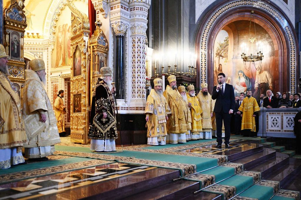 Богослужебные песнопения исполнили хор Храма Христа Спасителя и хор Троице-Сергиевой лавры.